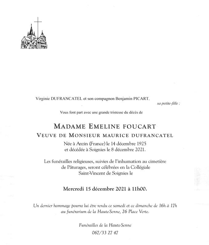 Died in Soignies (7060) on 08 December 2021 at the age of 95 years