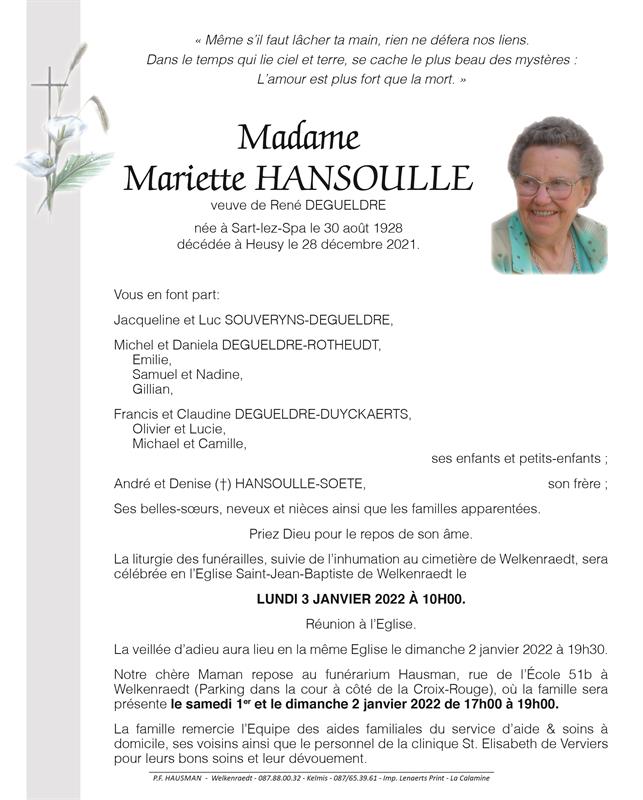 Madame Mariette HANSOULLE