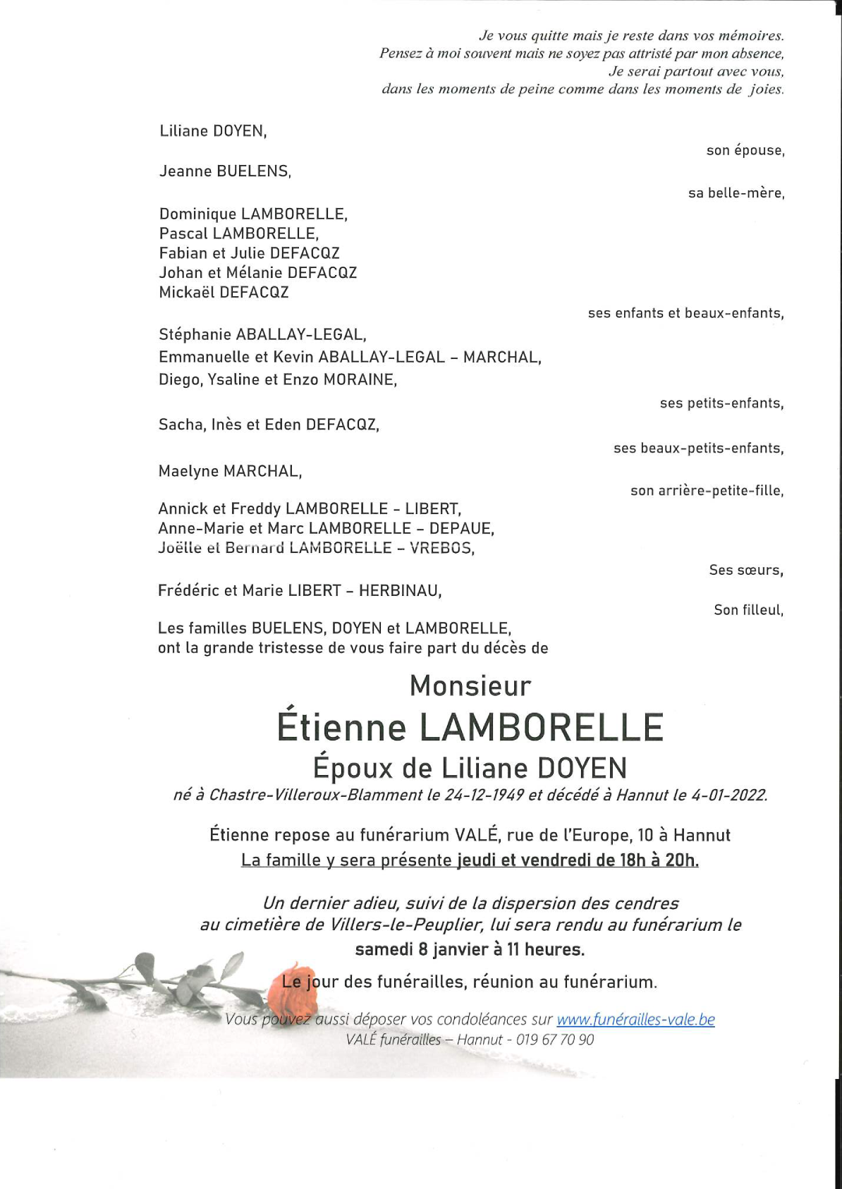 Décédé à Villers-le-Peuplier (4280) le mardi 4 janvier 2022 à l'âge de 72 ans