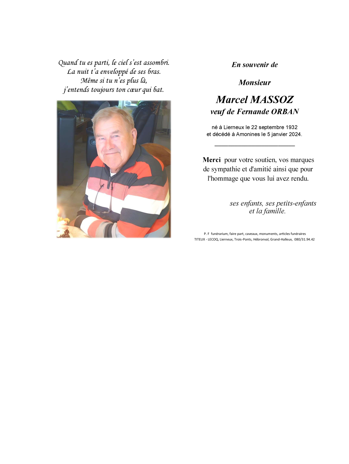 Geboren te Lierneux (4990) op donderdag 22 september 1932