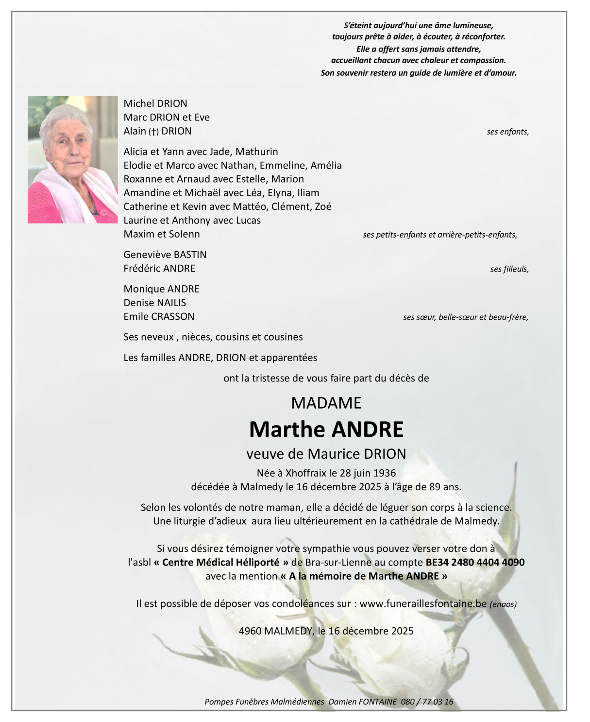 Overleden te Malmedy (4960) op dinsdag 16 december 2025 op 89-jarige leeftijd