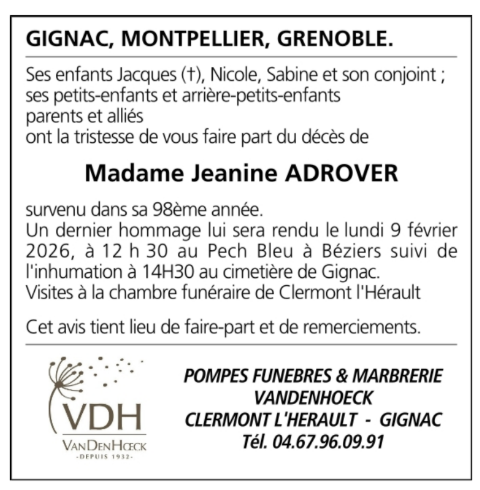 Died in Montpellier (34000, France) on 06 February 2026 at the age of 97 years