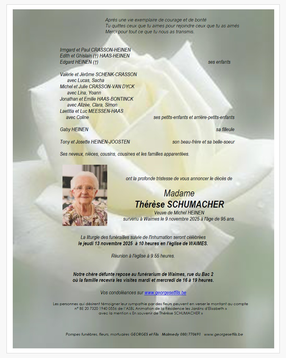 Madame Thérèse SCHUMACHER veuve de Michel HEINEN