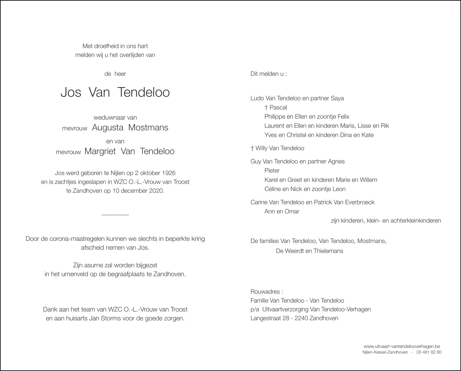 Overleden te Zandhoven (2240) op donderdag 10 december 2020 op 94-jarige leeftijd