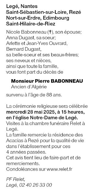 Fallecido en Nantes (44000, Francia) el domingo, 25 de mayo de 2025 a la edad de 88 años