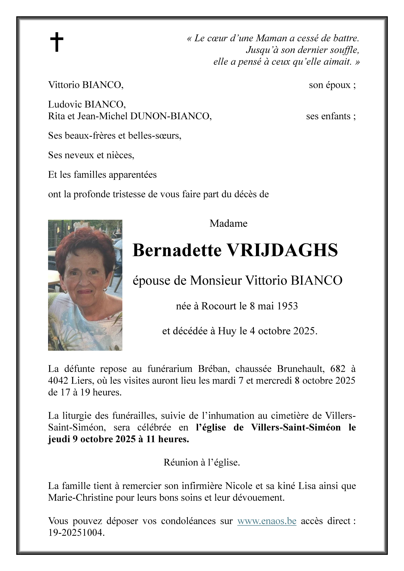 Died in Huy (4500) on 04 October 2025 at the age of 72 years