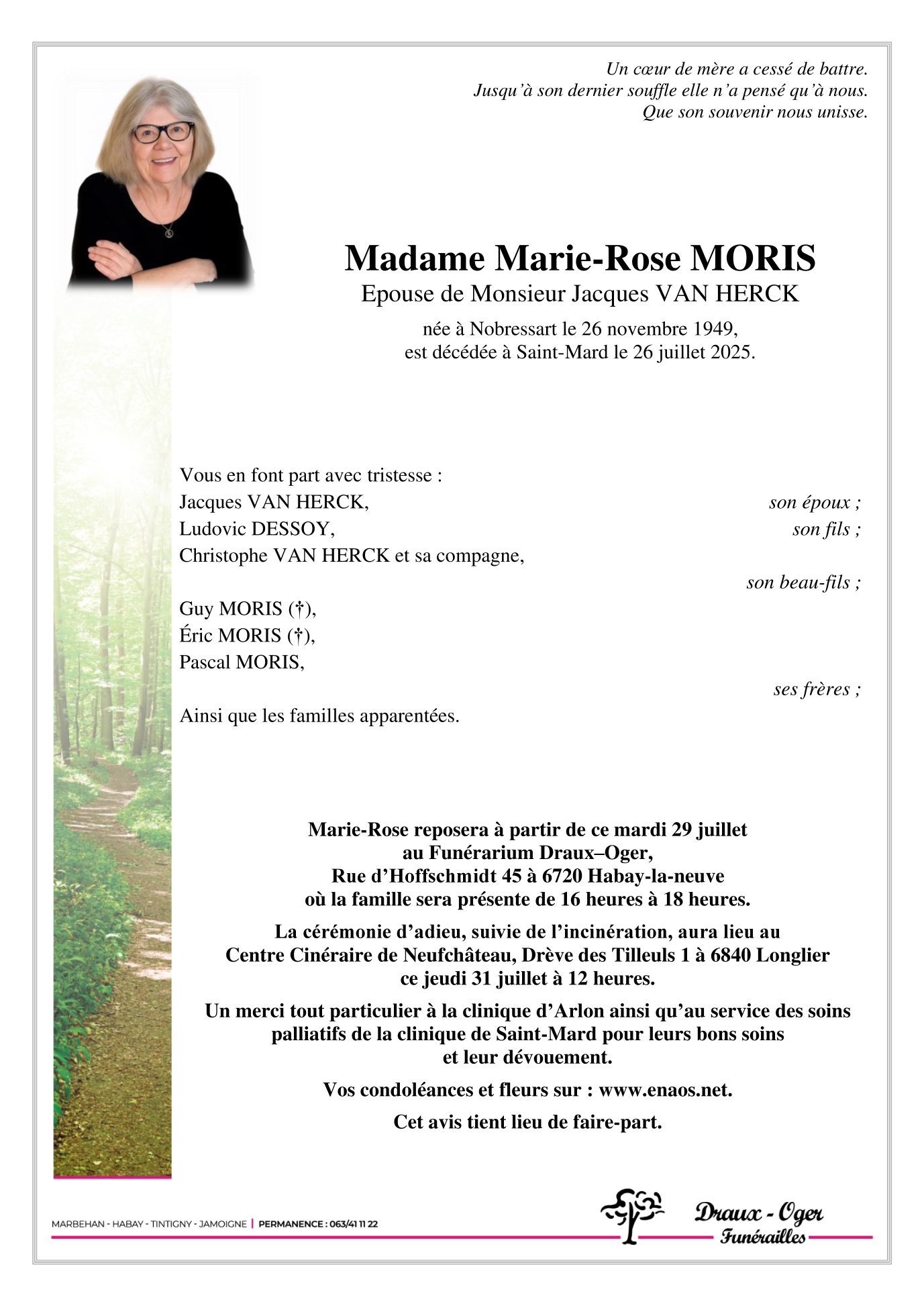Died in Saint-Mard (6762) on 26 July 2025 at the age of 75 years