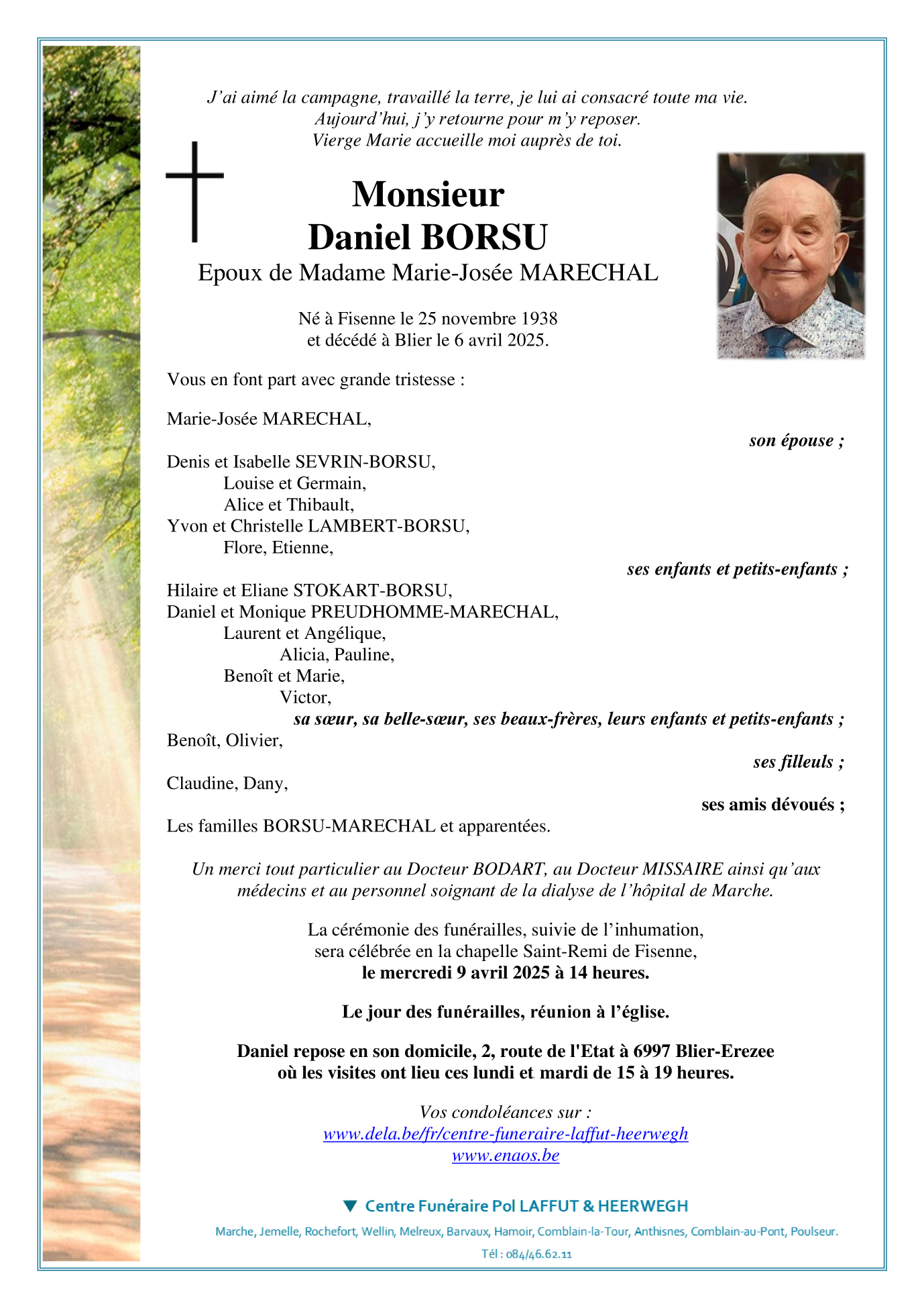 Fallecido en Blier (6997) el domingo, 6 de abril de 2025 a la edad de 86 años