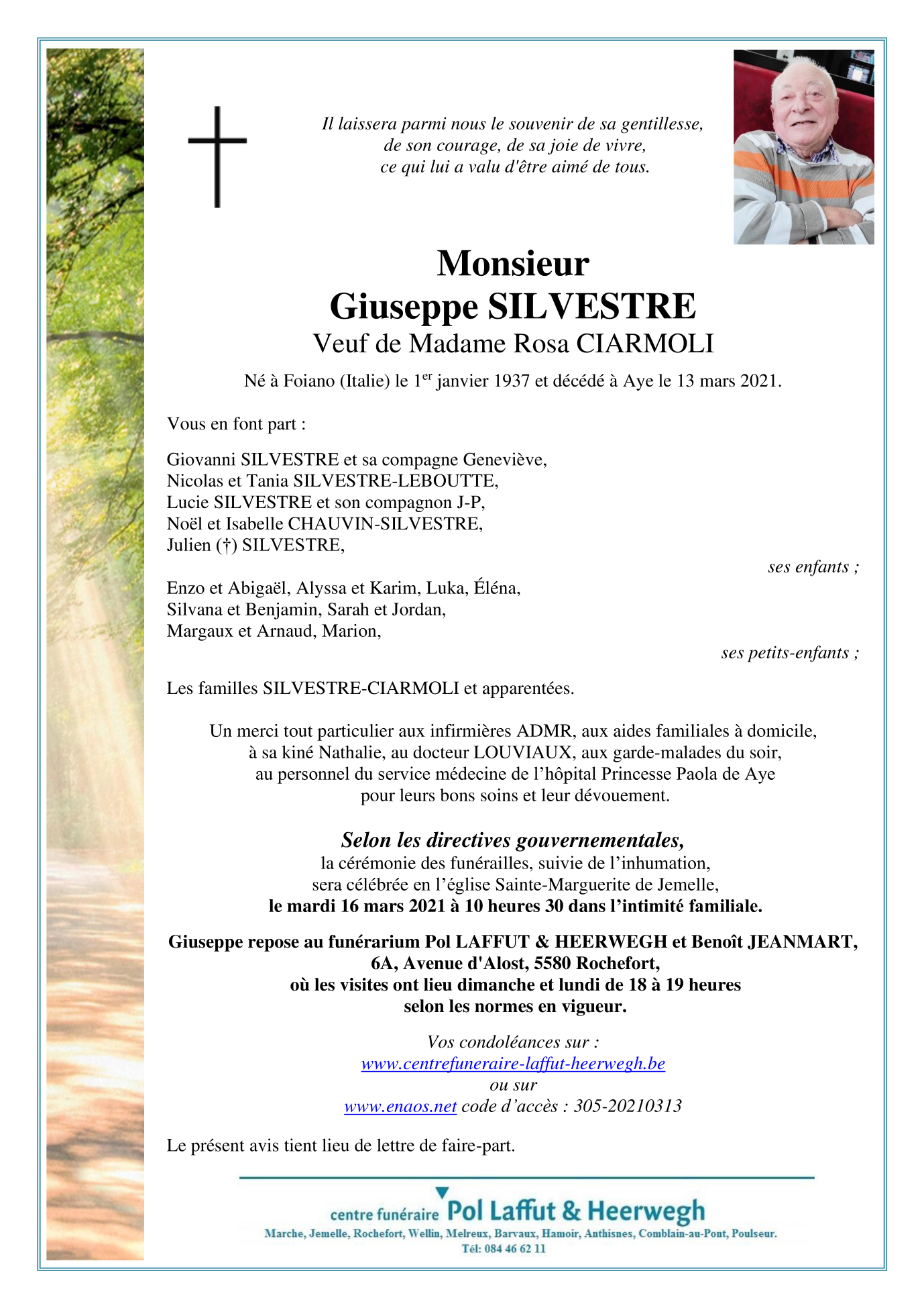 Décédé à Aye (6900) le samedi 13 mars 2021 à l'âge de 84 ans