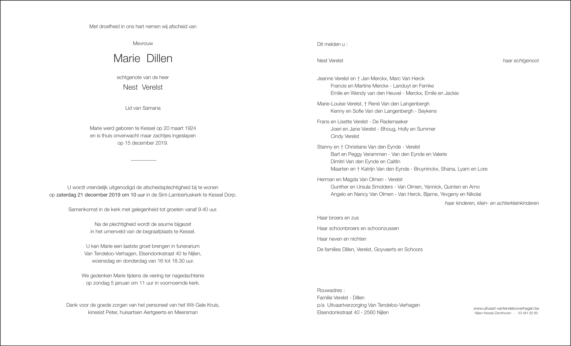 Overleden te Kessel (2560) op zondag 15 december 2019 op 95-jarige leeftijd