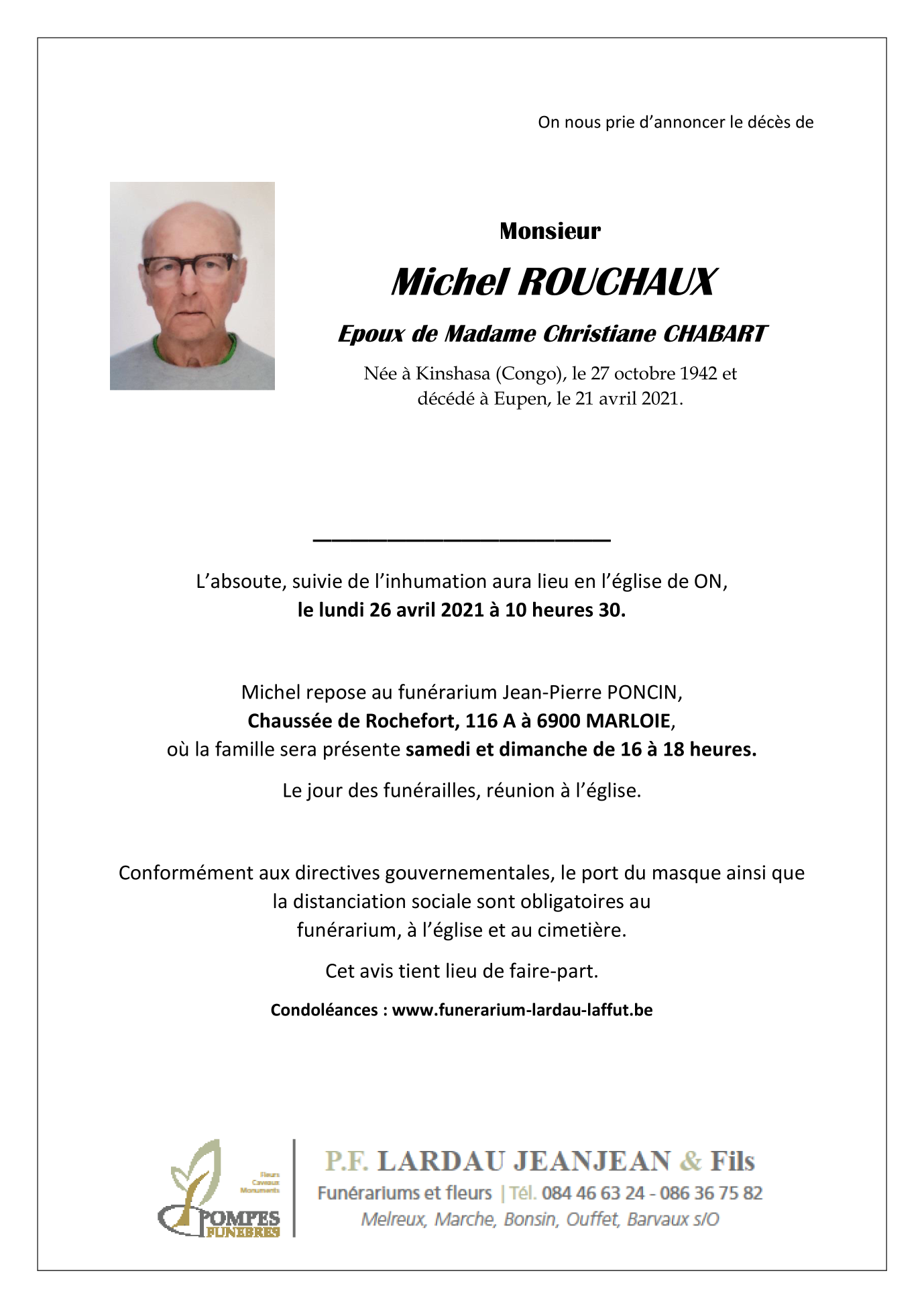 Died in Eupen (4700) on 21 April 2021 at the age of 78 years