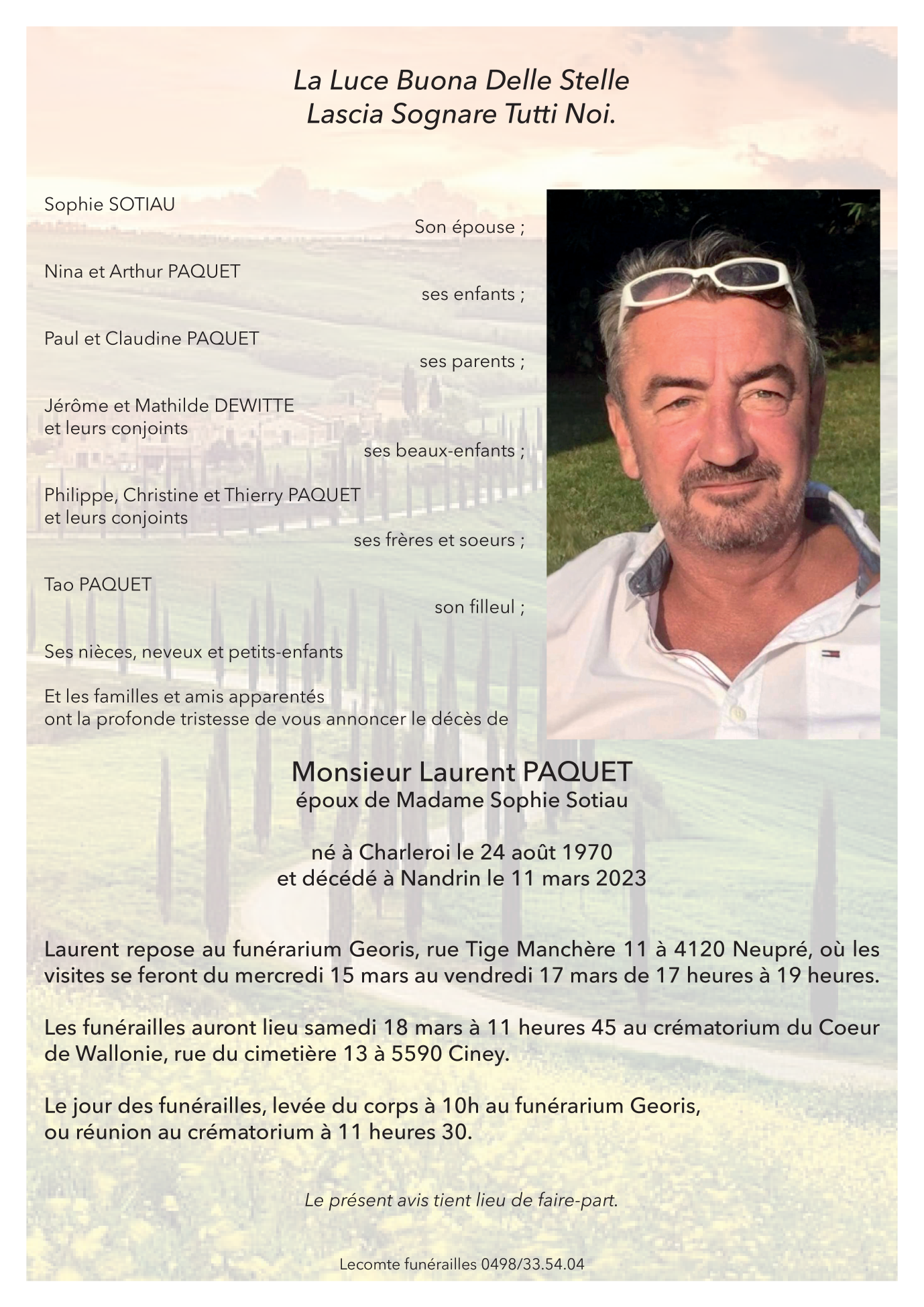 Décédé à Nandrin (4550) le samedi 11 mars 2023 à l'âge de 52 ans