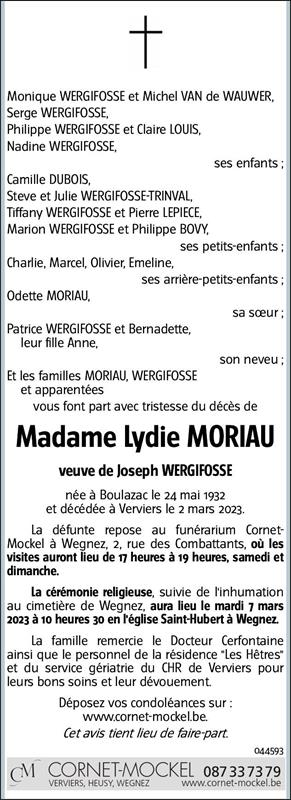 Décédée à Verviers (4800) le jeudi 2 mars 2023 à l'âge de 90 ans