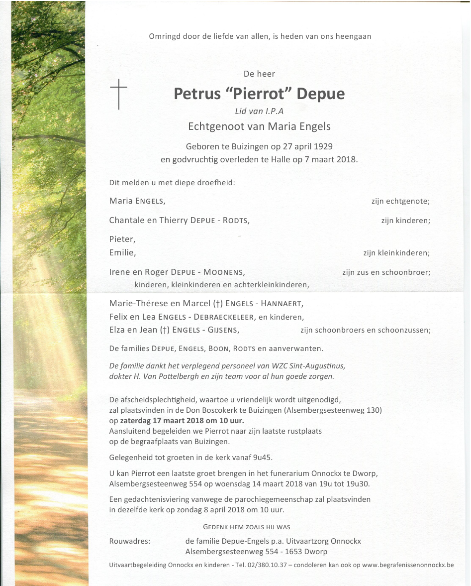 Décédé à Halle (1500) le mercredi 7 mars 2018 à l'âge de 88 ans