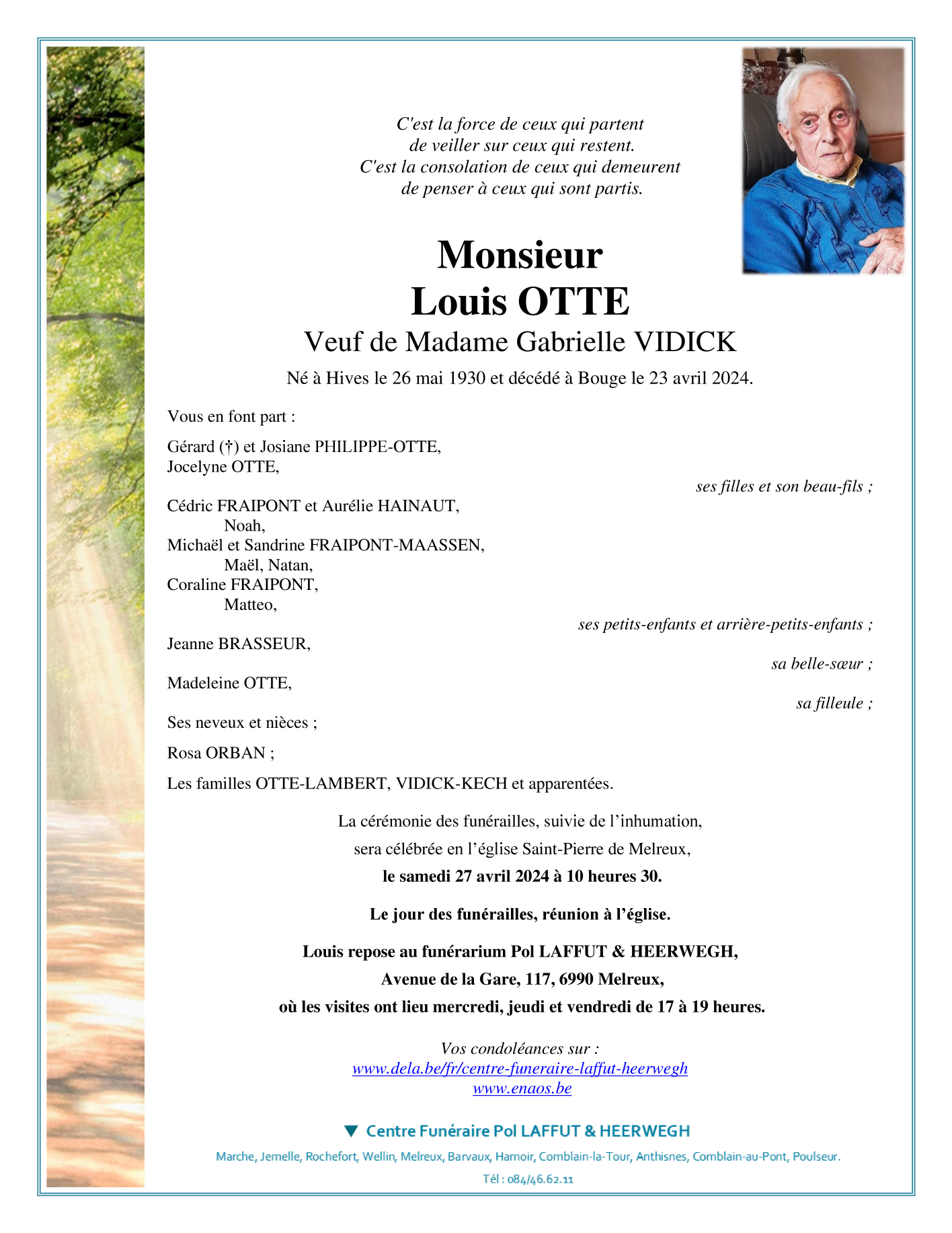 Fallecido en Bouge (5004) el martes, 23 de abril de 2024 a la edad de 93 años