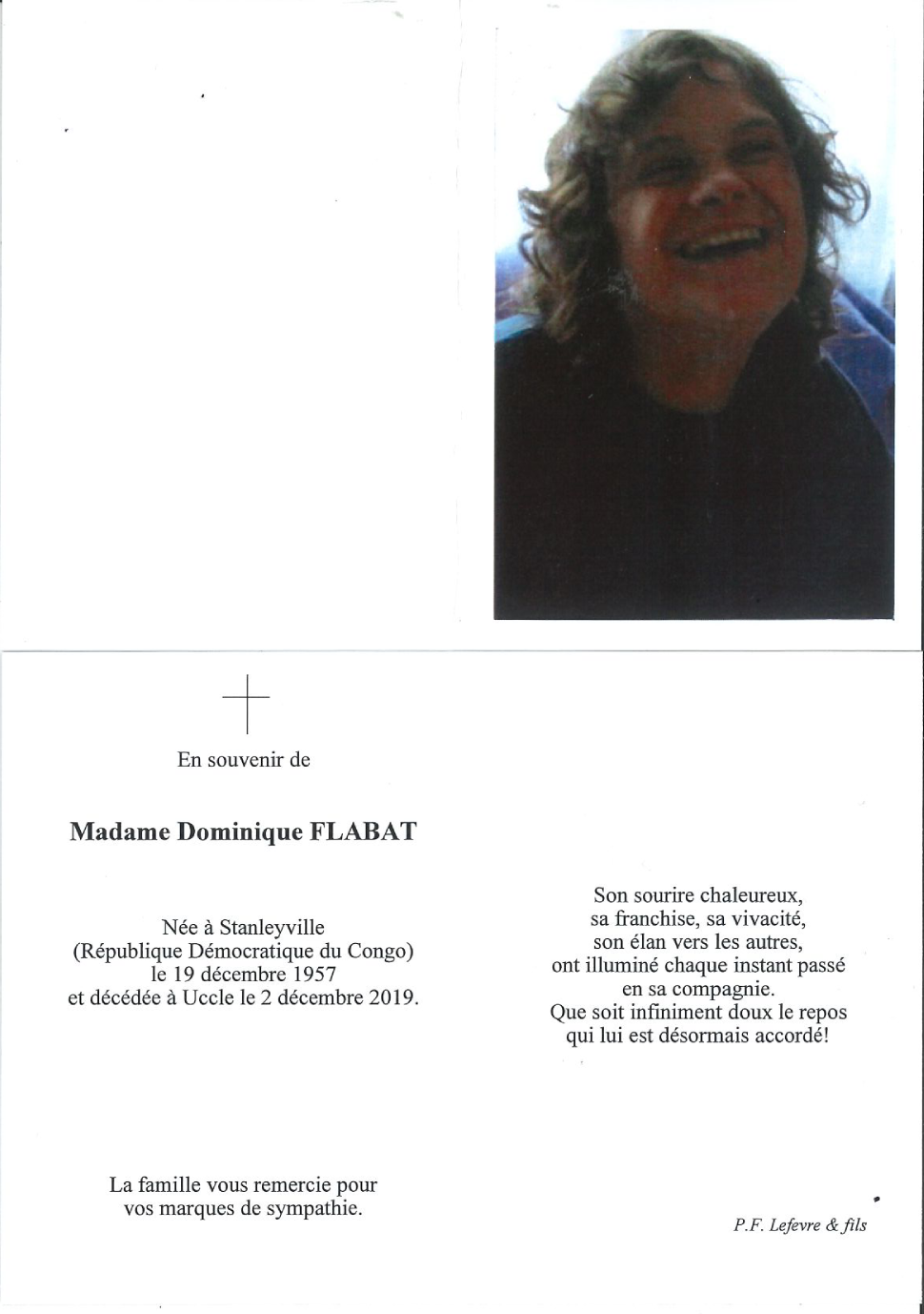 Décédée à Bruxelles (Uccle) (1180) le lundi 2 décembre 2019 à l'âge de 61 ans