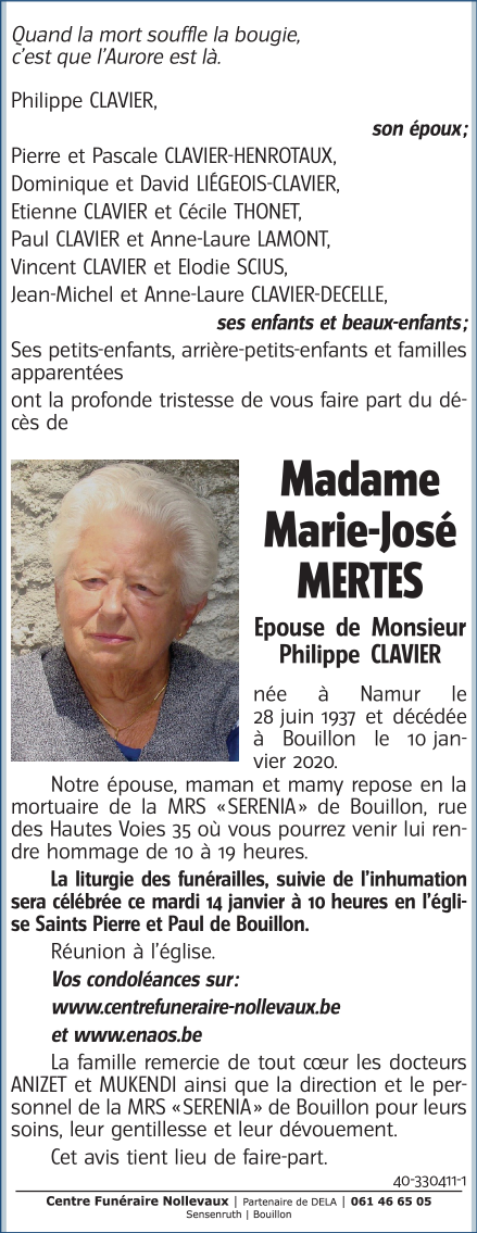 Died in Bouillon (6830) on 10 January 2020 at the age of 82 years