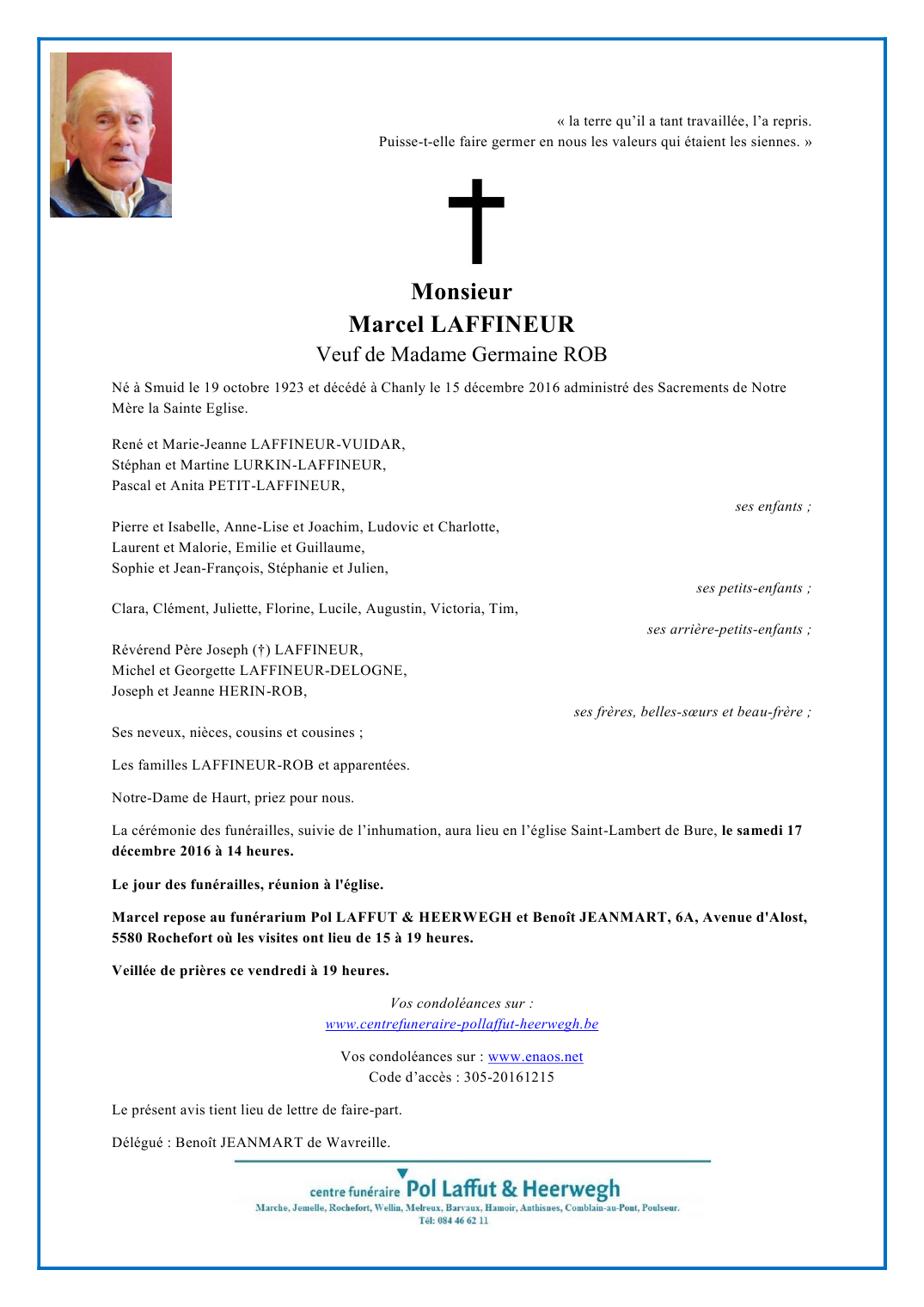 Died in Chanly (6921) on 15 December 2016 at the age of 93 years