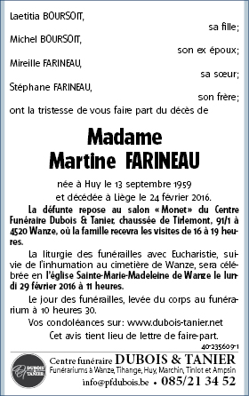 Overleden te Liège (4000) op woensdag 24 februari 2016 op 56-jarige leeftijd