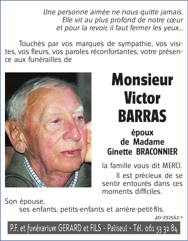 Died in Fays-les-Veneurs (6856) on 04 April 2018 at the age of 88 years
