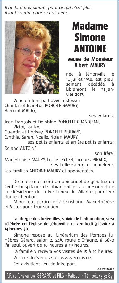 Overleden te Libramont (6800) op dinsdag 31 januari 2017 op 78-jarige leeftijd