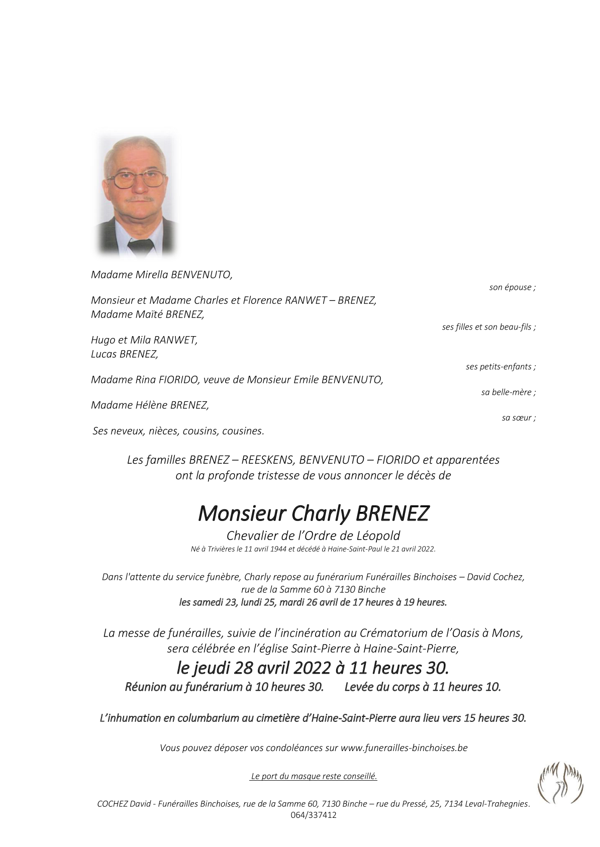 Décédé à Haine-Saint-Paul (7100) le jeudi 21 avril 2022 à l'âge de 78 ans