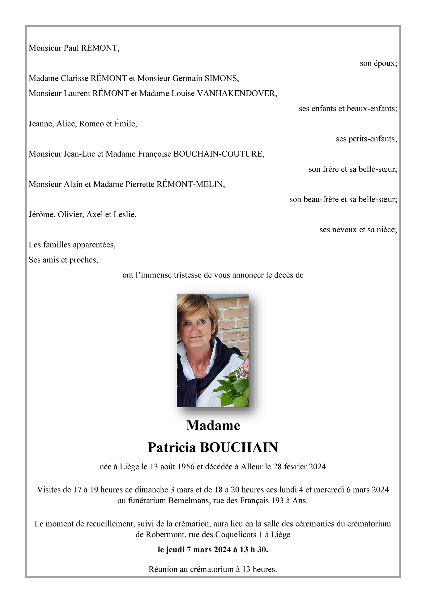 Epouse de Monsieur Paul RÉMONT