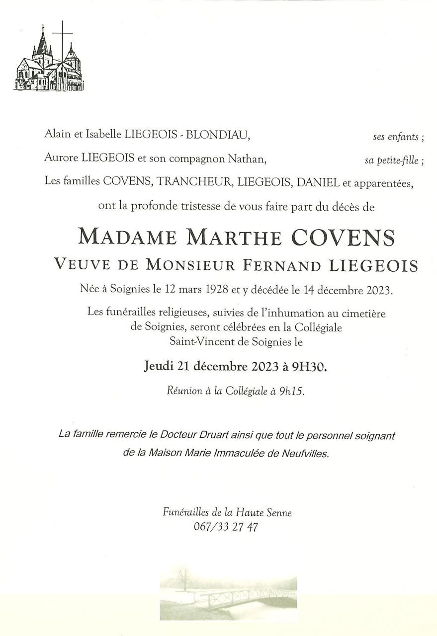 Décédée à Soignies (7060) le jeudi 14 décembre 2023 à l'âge de 95 ans