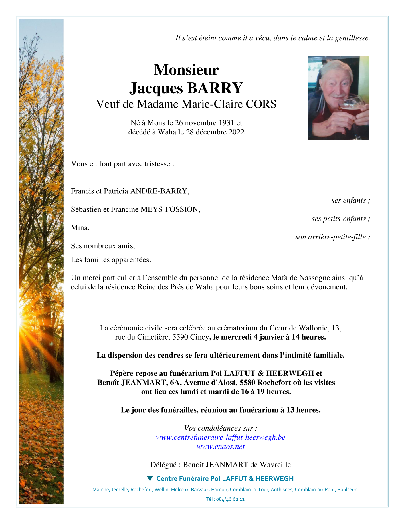 Overleden te Waha (6900) op woensdag 28 december 2022 op 91-jarige leeftijd