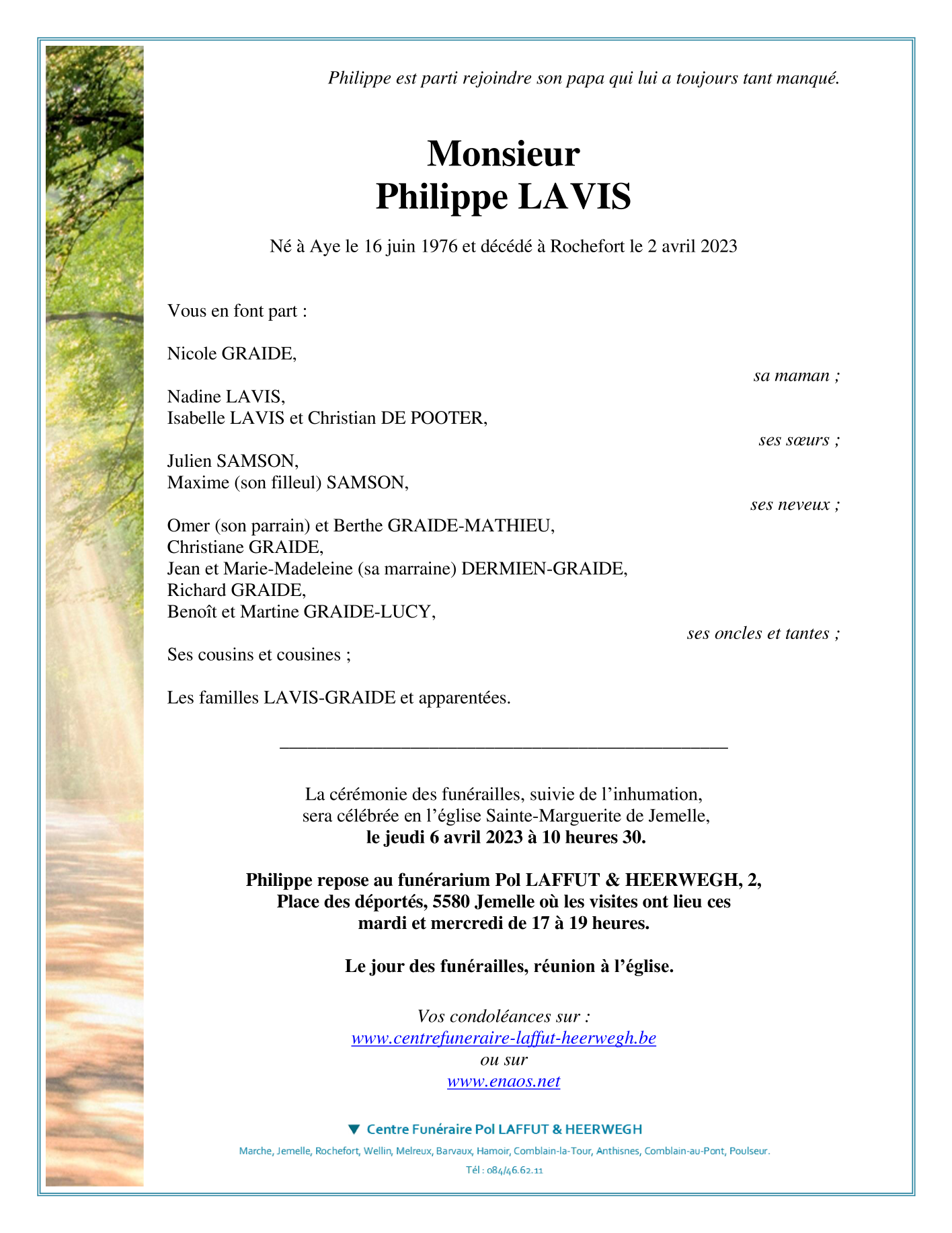 Décédé à Rochefort (5580) le dimanche 2 avril 2023 à l'âge de 46 ans