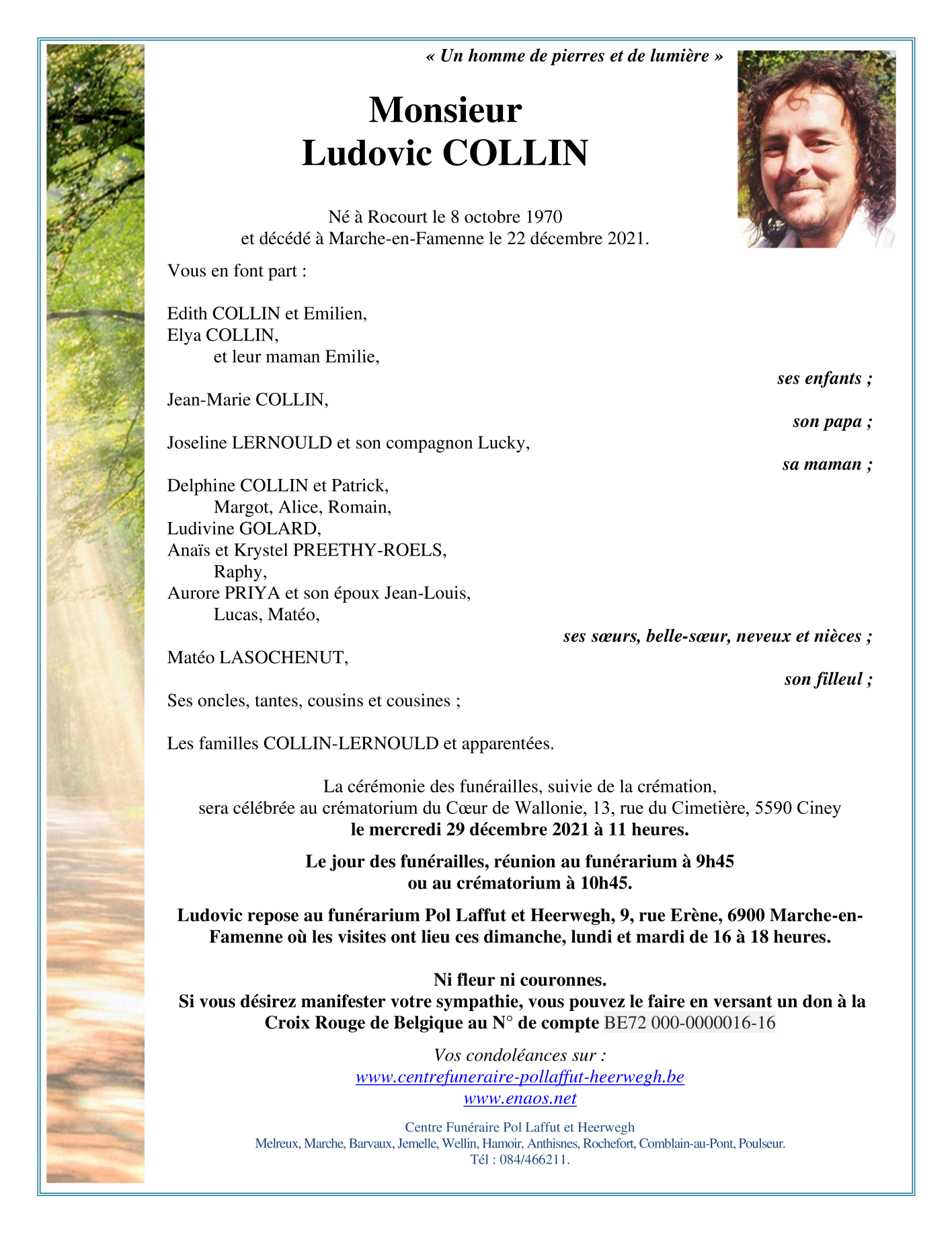 Fallecido en Marche-en-Famenne (6900) el miércoles, 22 de diciembre de 2021 a la edad de 51 años