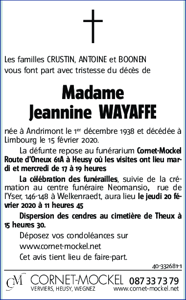 Madame Jeannine WAYAFFE
