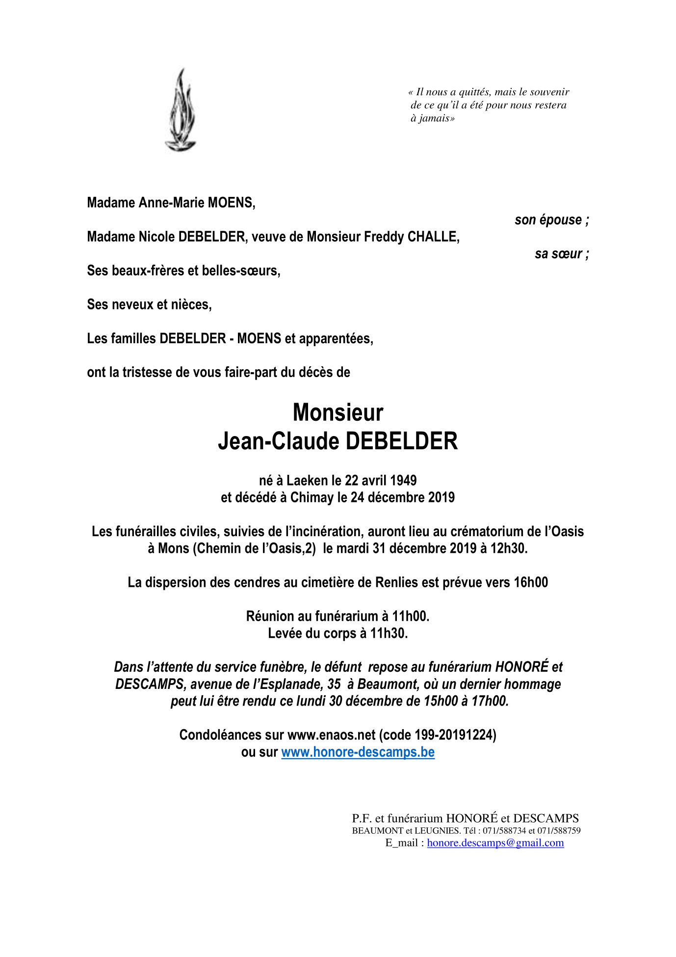 Fallecido en Chimay (6460) el martes, 24 de diciembre de 2019 a la edad de 70 años