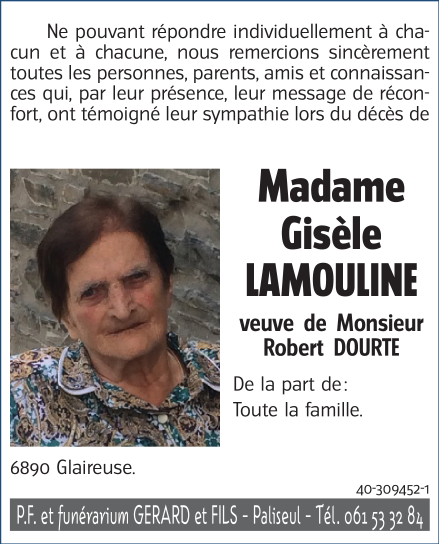 Décédée à Libramont (6800) le lundi 7 janvier 2019 à l'âge de 83 ans