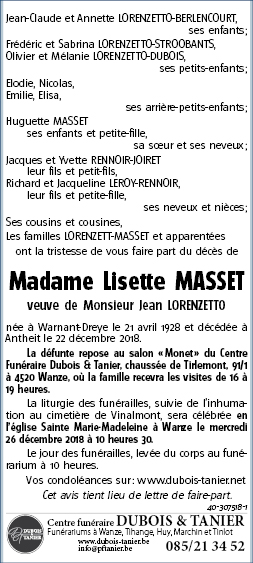 Died in Antheit (4520) on 22 December 2018 at the age of 90 years