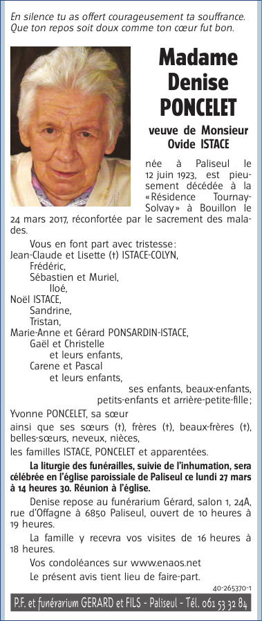 Died in Bouillon (6830) on 24 March 2017 at the age of 93 years