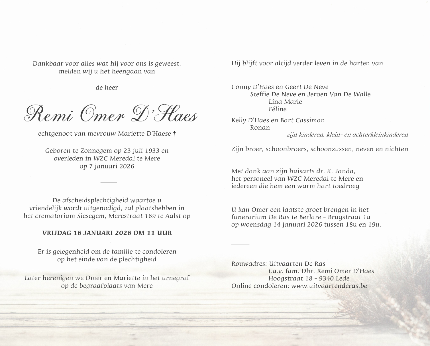 Died in Mere (9420) on 07 January 2026 at the age of 92 years