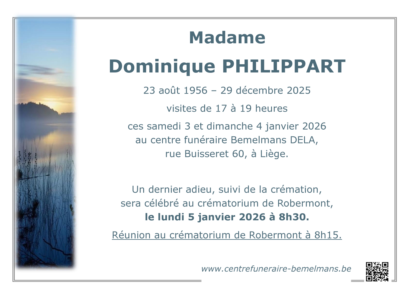 Décédée à Vaux-sous-Chèvremont (4051) le lundi 29 décembre 2025 à l'âge de 69 ans