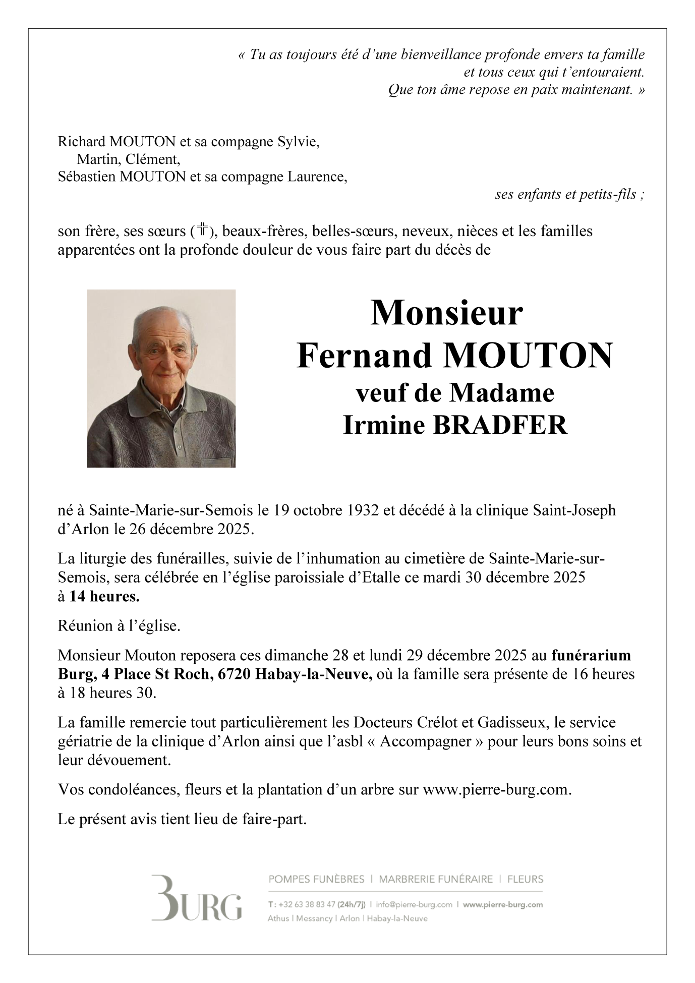 Overleden te Arlon (6700) op vrijdag 26 december 2025 op 93-jarige leeftijd