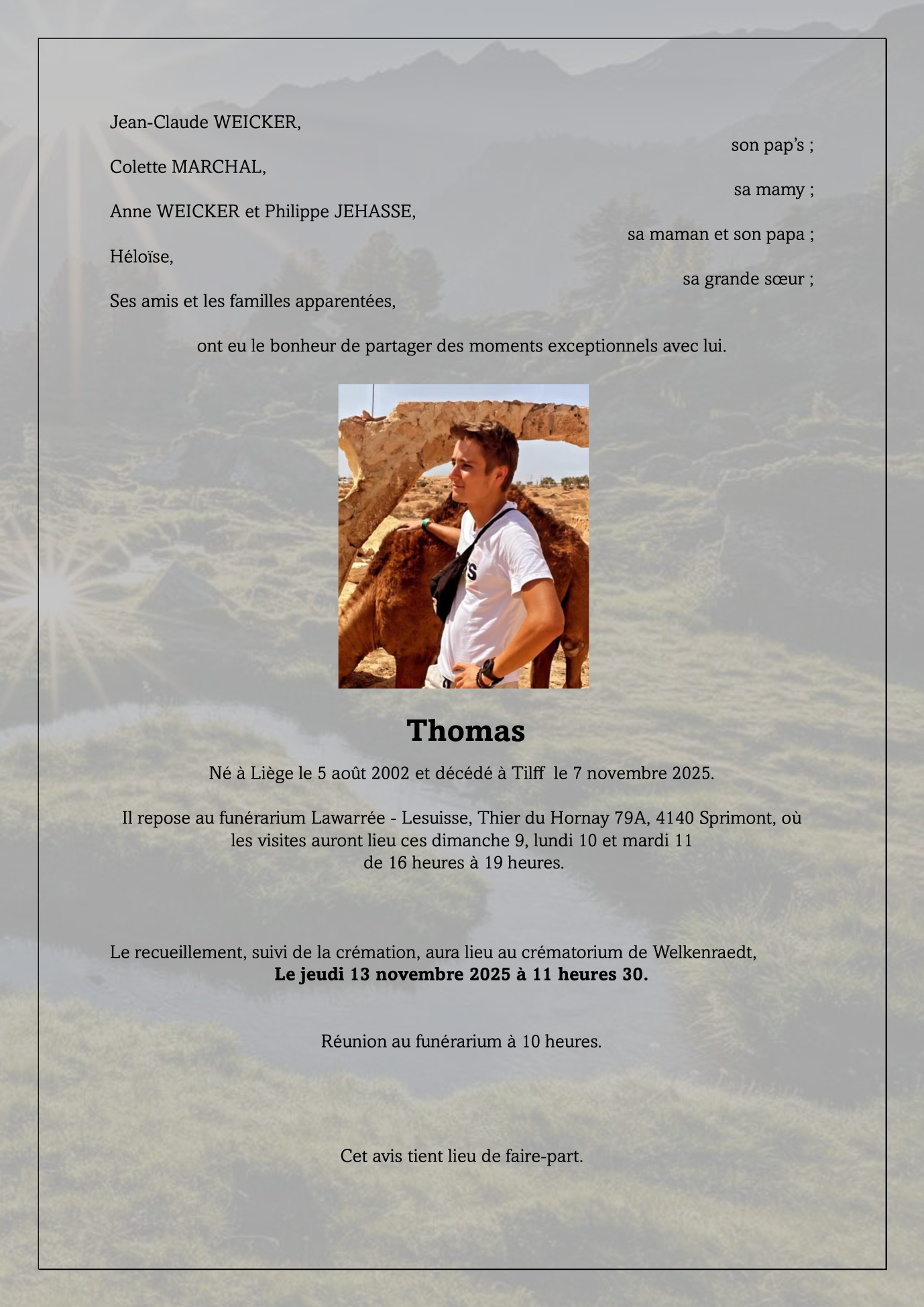Fallecido en Esneux (4130) el viernes, 7 de noviembre de 2025 a la edad de 23 años