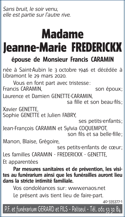 Spouse of Monsieur Francis CARAMIN