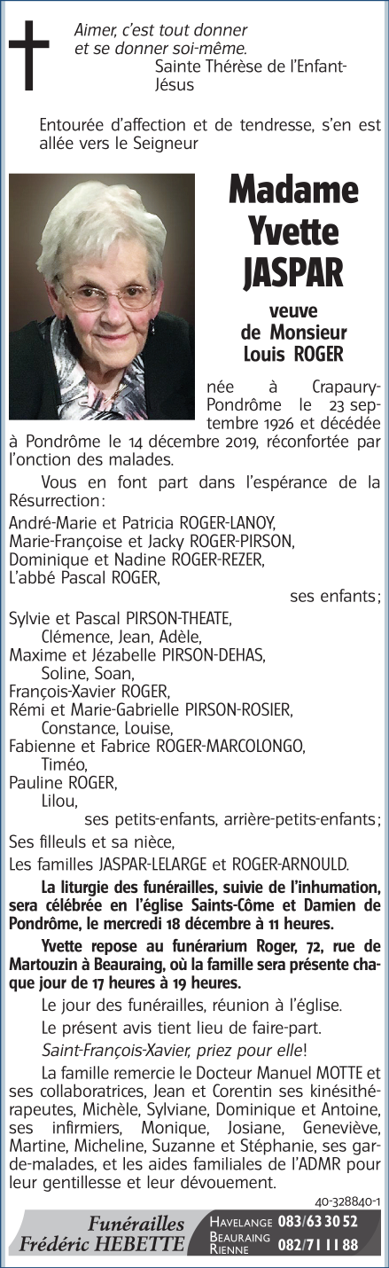 Madame Yvette JASPAR