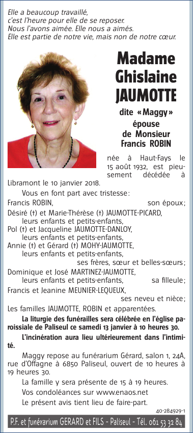 Died in Libramont (6800) on 10 January 2018 at the age of 85 years