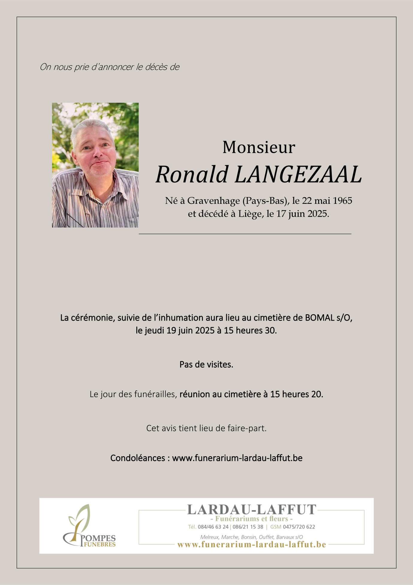 Décédé à Liège (4000) le mardi 17 juin 2025 à l'âge de 60 ans