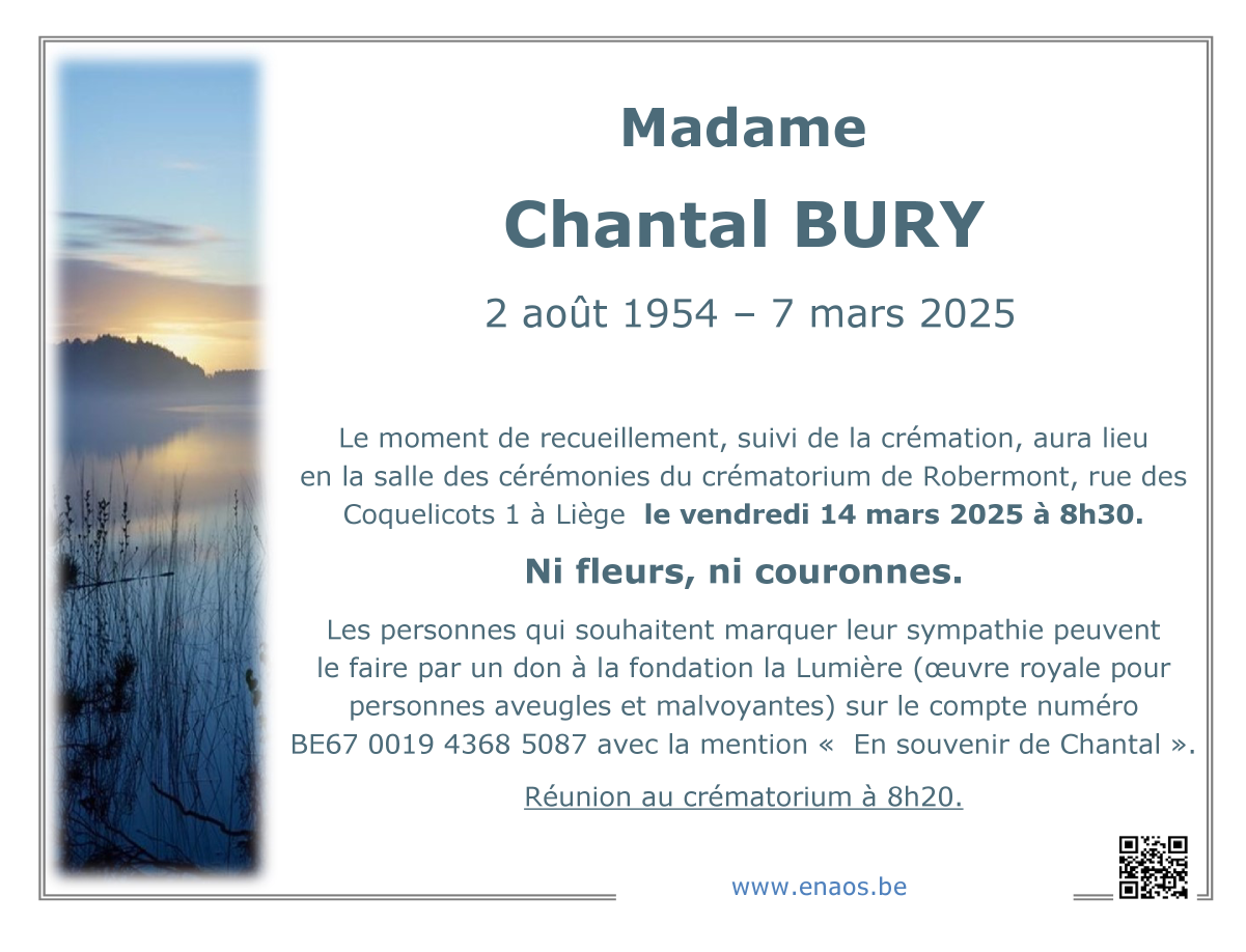 Décédée à Liège (4000) le vendredi 7 mars 2025 à l'âge de 70 ans
