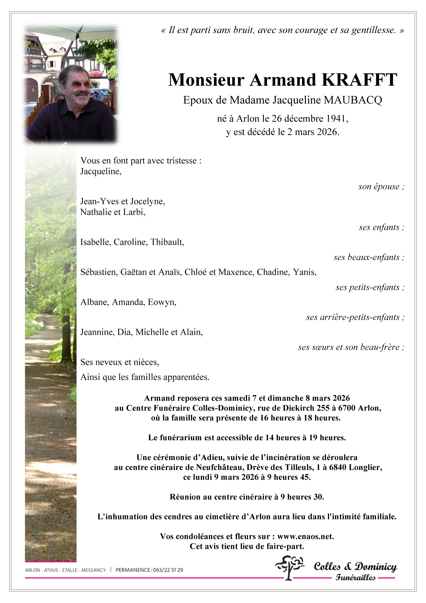 Décédé à Arlon (6700) le lundi 2 mars 2026 à l'âge de 84 ans