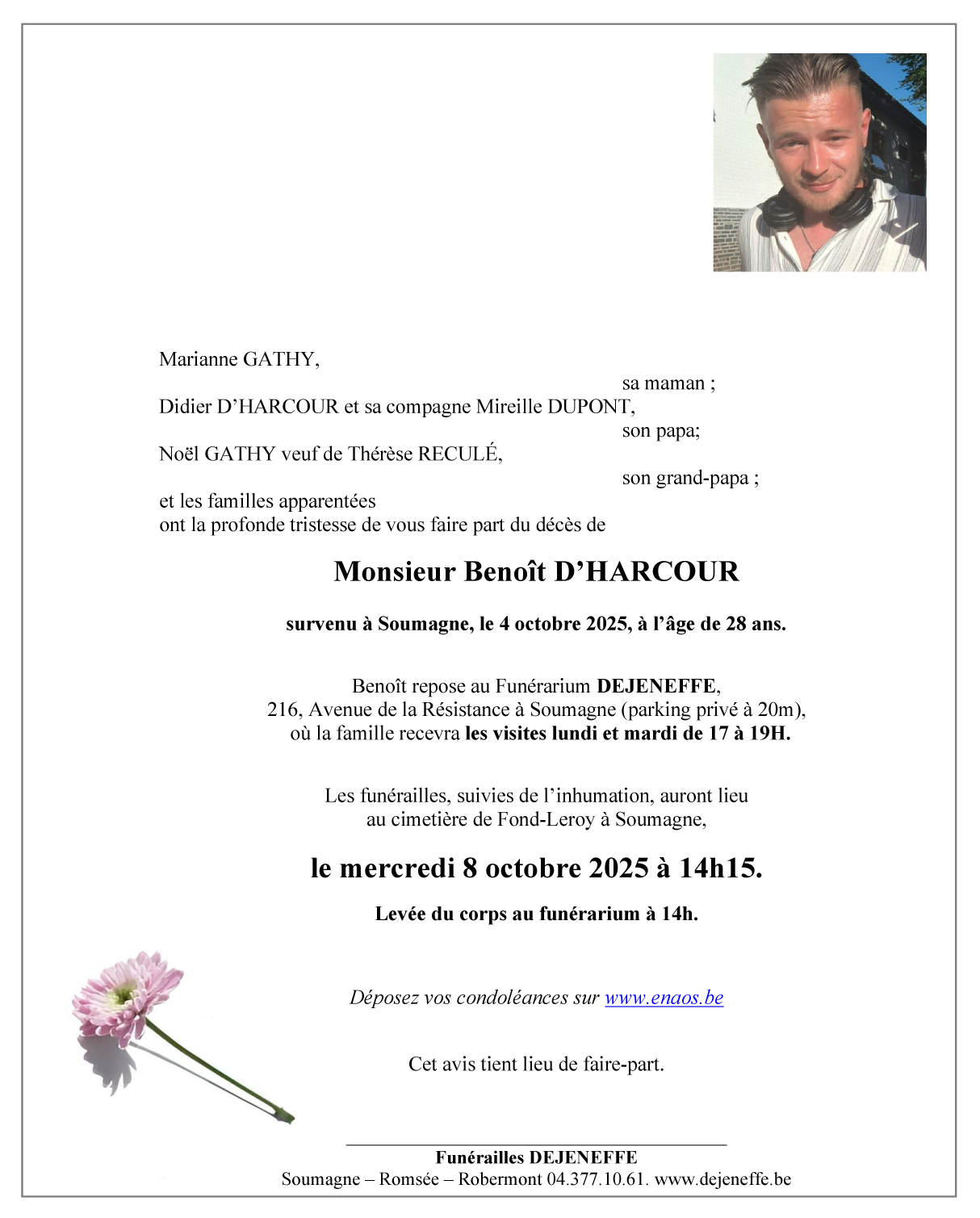 Décédé à Soumagne (4630) le samedi 4 octobre 2025 à l'âge de 28 ans