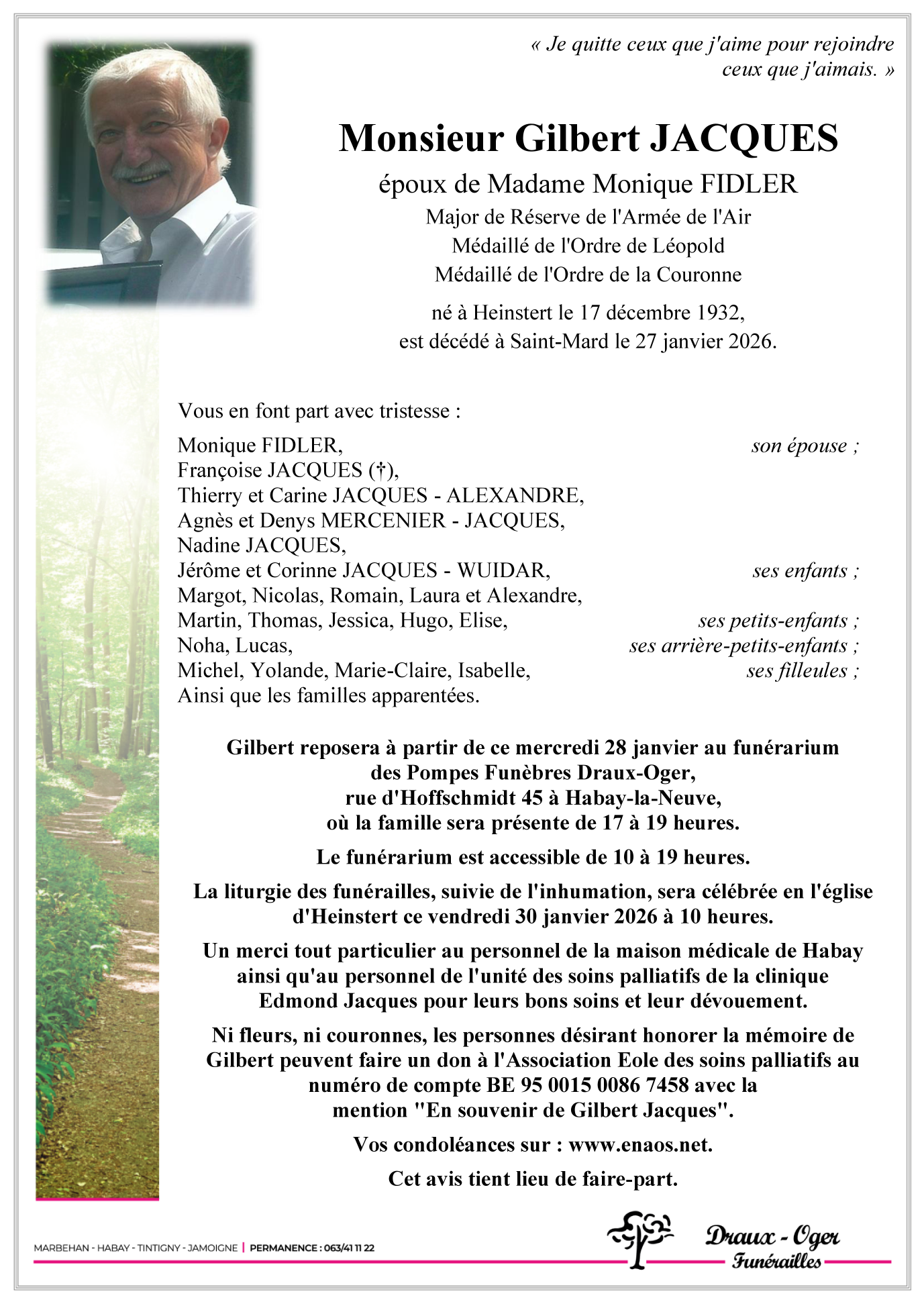 Décédé à Saint-Mard (6762) le mardi 27 janvier 2026 à l'âge de 93 ans