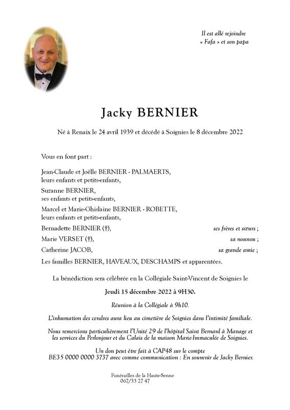 Died in Soignies (7060) on 08 December 2022 at the age of 83 years