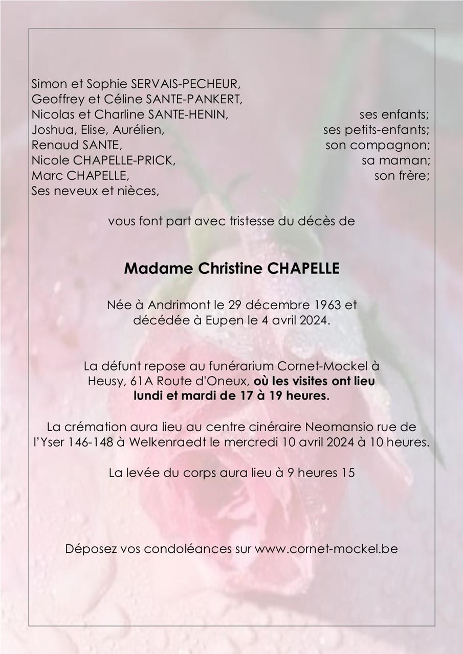 Fallecida en Eupen (4700) el jueves, 4 de abril de 2024 a la edad de 60 años